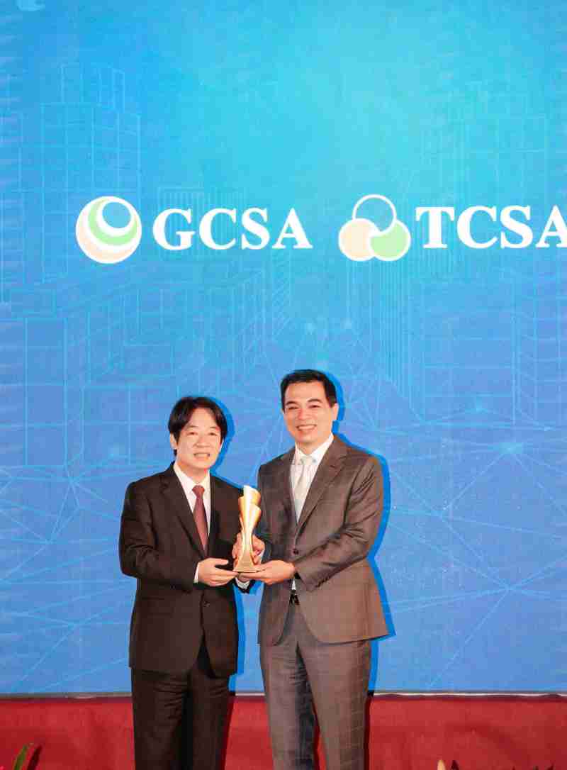 达全方位永续表现获全球永续奖及台湾永续奖肯定,,,,由副总统赖清德颁奖 (左),,,PG国际总经理柯富仁 (右) 代表领奖