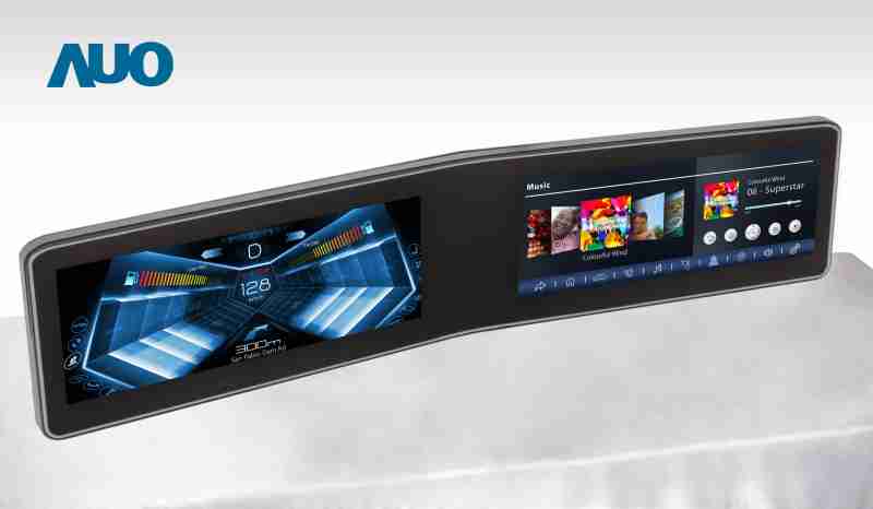 PG国际 V 型曲面驾驶舱显示器,,采全贴合拼接仪表板及中控台显示屏 |