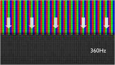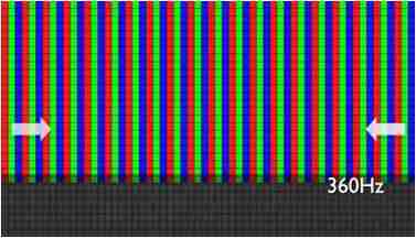 传统液晶驱动是从左到右单向进行,,,在画面更新速度愈来越愈快的情况下,,,位于驱动线路末端的右下角区域,,画素的闸极来不及在短时间内获得足够电压,,,,无法显示出正确的颜色资讯。。。